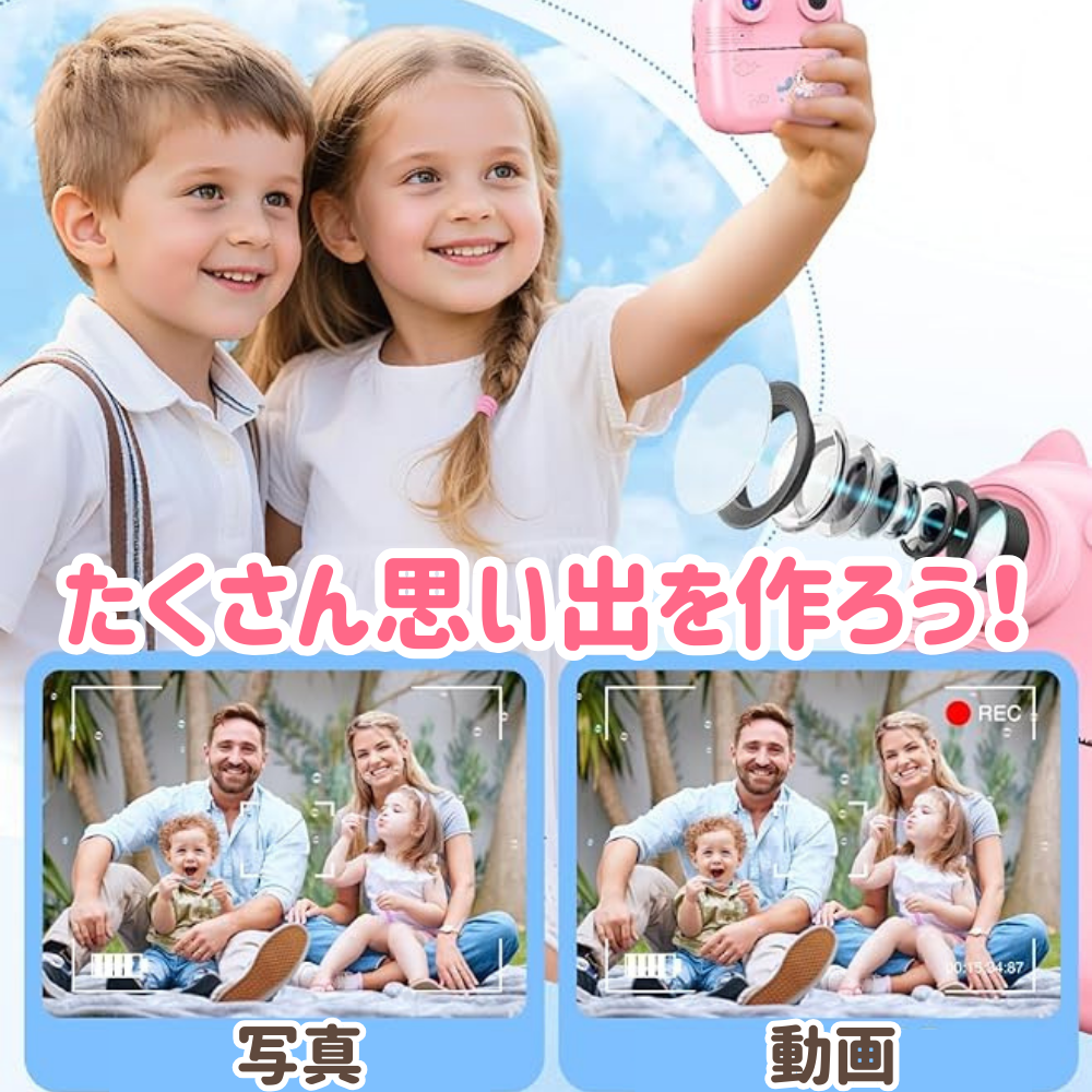 このカメラプリンターは写真以外にも動画の保存・ミニゲーム・編集・コラージュまでできるからこれ1つでずっと楽しめる🌈