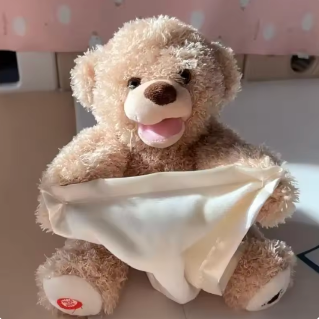 1️⃣ クマさんのお尻部分の布を剥がして、単3電池を3本入れる