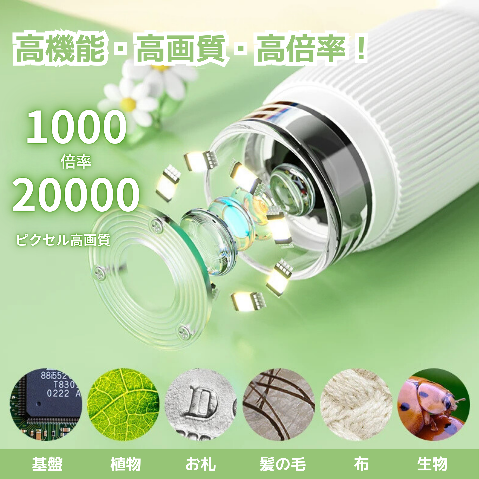 葉っぱ、虫、布、コインなど、身の回りのものを簡単に拡大して観察できます。
